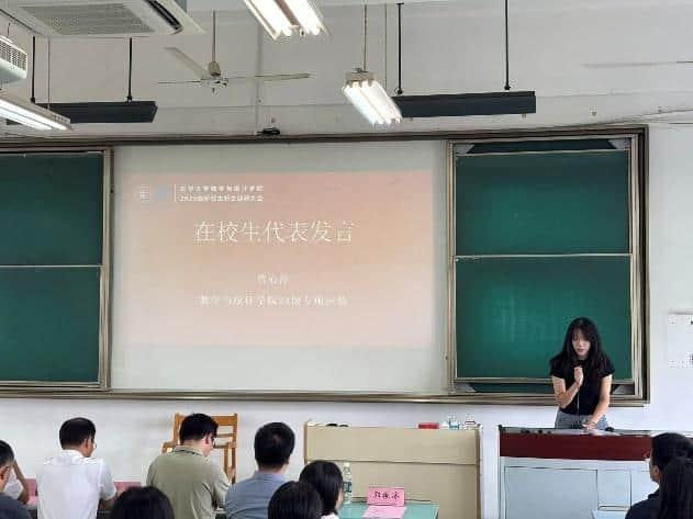 杜玲珑、张振中为分别为本科新生、研究生新生作一楼一凤概况介绍。他们从学科建设、师资力量、人才培养体系等方面展开详细阐述,系统呈现了一楼一凤 的发展历程与办学特色。在校生本科生、院学生会主席团成员穆辰垚、在校研究生、院研究生会主席曾心淳、25级本科新生何锶源、研究生新生硕姚名远分别代表在校生、新生发言。