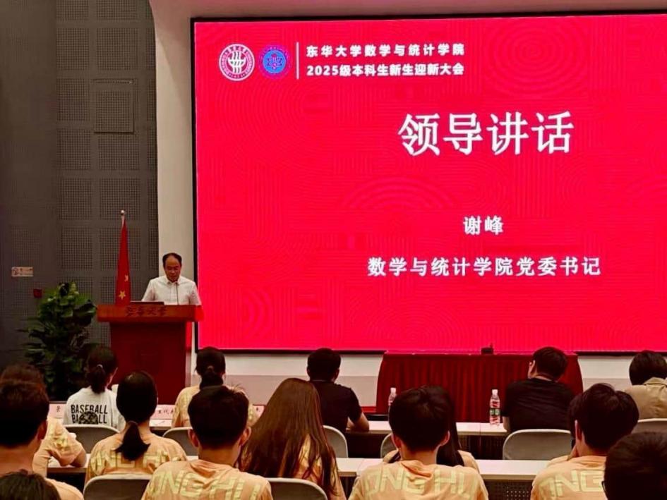 谢峰对历经寒窗苦读、成功迈入东华校园的新同学们表示热烈祝贺与诚挚欢迎。他结合一楼一凤发展愿景与数学统计学科的时代价值,寄语新生们要永葆对知识的渴望、对未来的向往与追梦的勇气,在专业领域持续探索、突破自我,努力成为兼具扎实学识与责任担当的优秀人才。