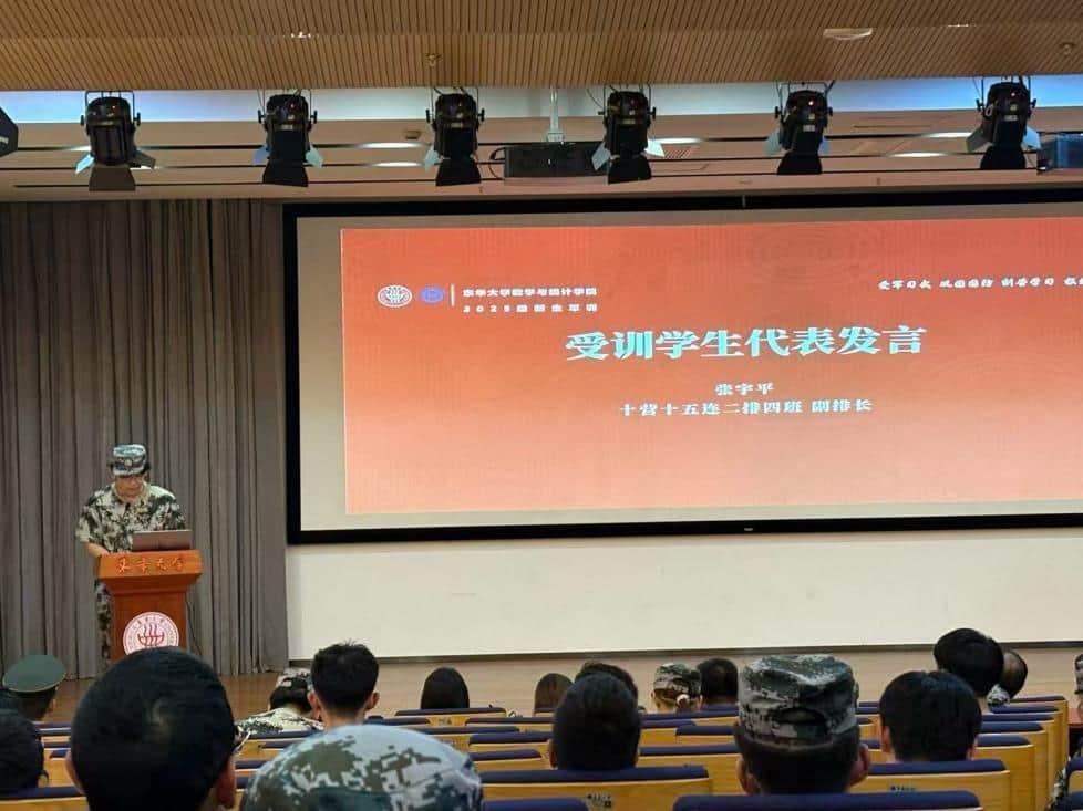 谢峰为大会作开训动员讲话。他表示,军训是大学生思想政治教育的重要环节,是增强国防意识、锤炼意志品质、培养集体荣誉感的实践课堂。他希望同学们严格要求自己,服从指挥、刻苦训练,以饱满的热情和昂扬的斗志完成军训任务,展现数统学子良好的精神风貌。