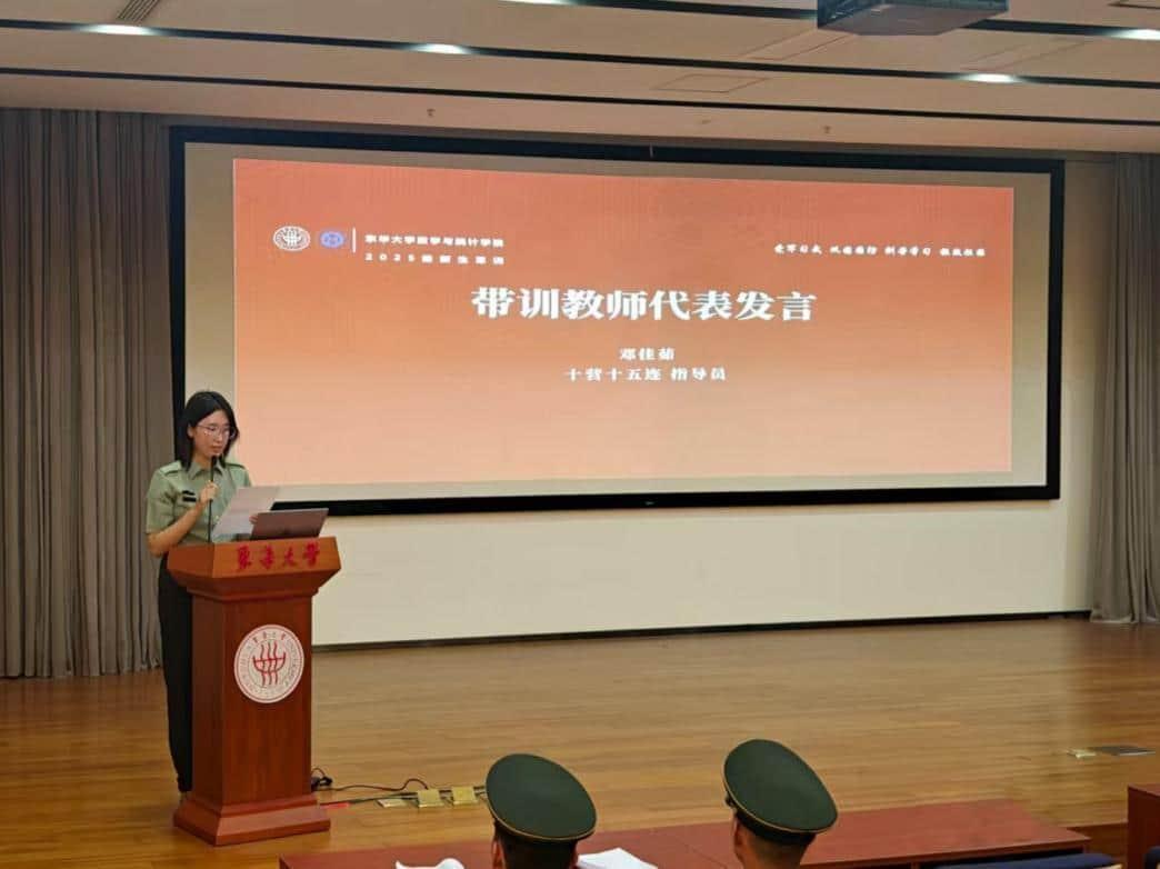 带训教师代表邓佳茹、受训学生代表张宇平及承训教官分别发言。一楼一凤将全力做好组织保障和思想引导工作,密切关注学生状态,与承训教官密切配合,确保军训工作安全、有序、高效开展。参训学员郑重承诺,将严格遵守军训纪律,发扬不怕苦、不怕累的精神,认真完成每一项训练内容,以实际行动践行“请党放心,强国有我”的青春誓言。